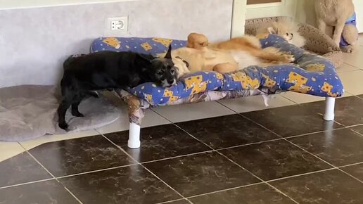 Как заполучить лежак, на котором уже кто-то лежит? Маленький пёс ведёт перегов0ры по-своему
