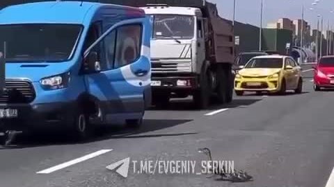 Москвичи на Калужском шоссе самоорганизовались и помогли уточке с утятами безопасно перейти проезжую часть