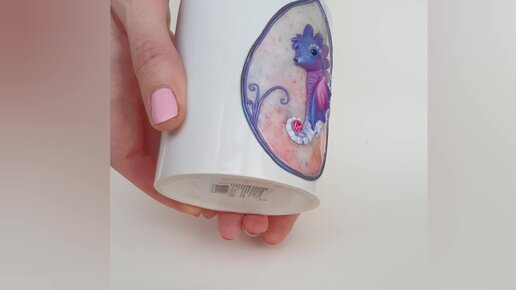 Белая кружка с декором Морской конек из полимерной глины. Керамическая чашка на подарок AnneAlArt