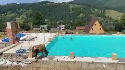 От жары в Узбекистане страдают не только люди, но и животные. Вот и корова решила воспользоваться бассейном для охлаждения))