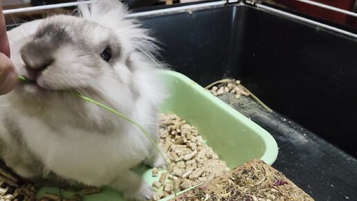 Уговариваю поесть травку кролика Путьку. Сегодня не особенно аппетит у него...