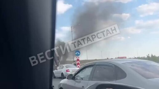 На выезде из Казани в сторону аэропорта загорелся автомобиль