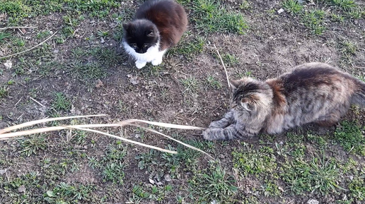Весёлые игры кошек. Нашли себе развлечение)