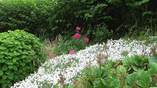 Цветник на спуске к реке Тускарь в Курске. Клумбу от проезжей части отделяет Сахалинский бамбук