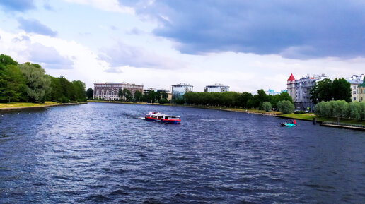 Петербург. Прогулочный теплоход плывет по Средней Невке.