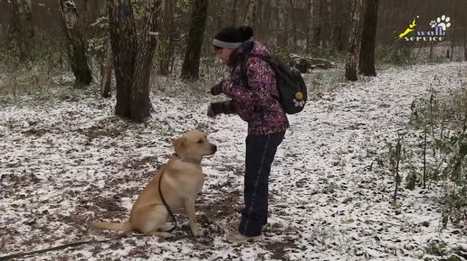 Подзыв-переключение кормом и тренировка удержания внимания, лабрадор ретривер