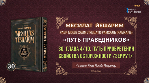 𝟑𝟎. Месилат Йешарим 4 | Путь приобретения свойства осторожности /Зеирут / | Рабби Лев Лэйб Лернер