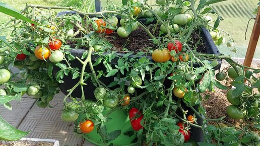 Томат Монгольский карлик в контейнере для раннего урожая. 28 июня 2023.