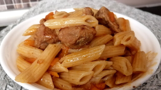 Из серии все в одной посуде. Лапша с мясом и соусом. Ничего лишнего и минимум посуды.