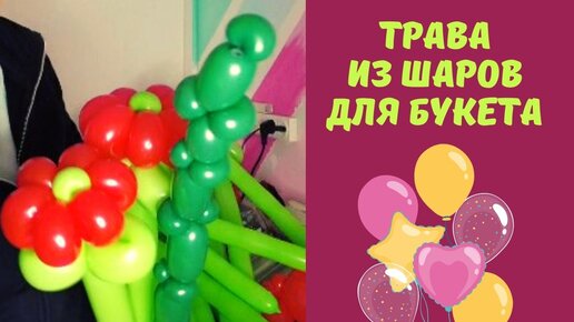 Трава из воздушных шаров для букета цветов. Декор из шаров для букета