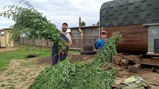 Наша "контора" вяжет веники. Заготавливаем витамины на зиму для кур – крапивные веники 🌿🌿🌿