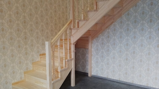 Деревянная лестница. Поворот на 90 градусов с забежными ступенями.