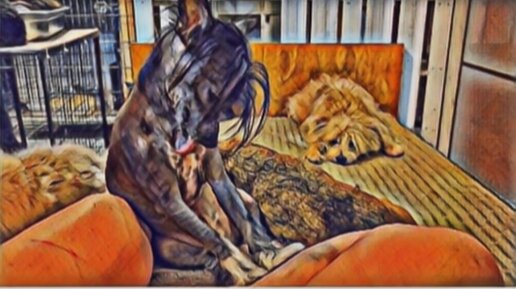 А среди них живут еще и пять собак. И вот собственно собаки забывают порой, что они собаки.