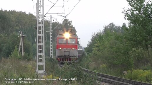 Электровоз ВЛ11-076 с грузовым поездом, 12 августа 2021 г.