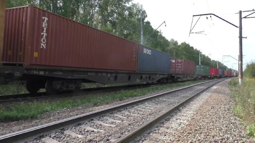 Электровоз 2ЭС6-803 с контейнерным поездом, БМО ж/д, 27 августа 2021 г.
