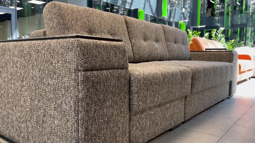 Прямой диван IQ 124 с функциональным блоком розеток и вкатным столиком в подлокотнике. Фабрика "Умные диваны"