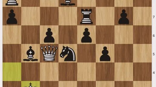 У чёрных за ферзя 3 лёгкие фигуры, ладья и 2-е пешки: однако белые 2-мя фигурами "творят чудеса"