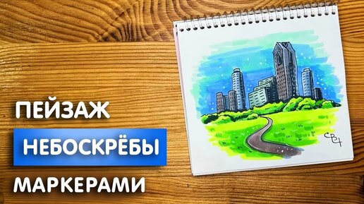 Рисунок скетч маркерами "Небоскребы" для скетчбука | Срисовка картинки для начинающих
