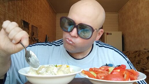 ОБЖОР пельмени с майонезом и салат из овощей/обед