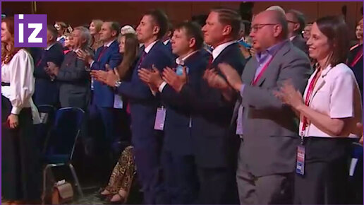 Зал аплодирует стоя Путину, выражая поддержку после событий 24 июня