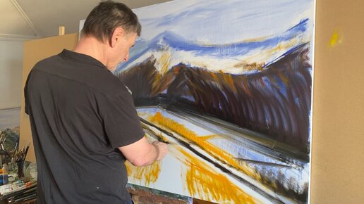 Высокогорный курорт Ведучи, Итум-Калинский р. ЧР маслом на холсте100 на 150 см. 1-этап Зилавди Яшуркаев.