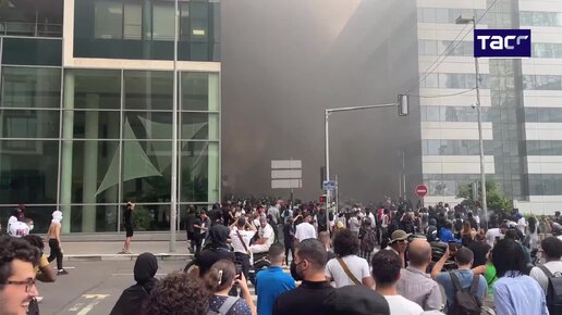 Протестующие в пригороде Парижа разбили окна в офисных зданиях, подожгли несколько машин