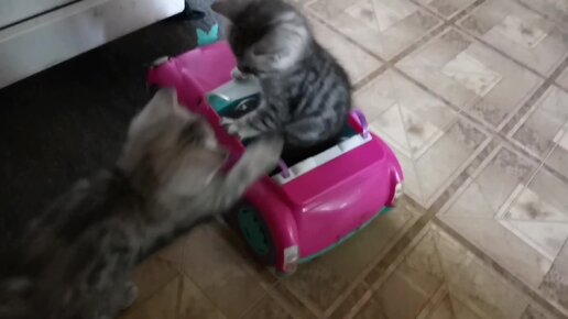 Маленькие котята делят розовую машину 1 часть.