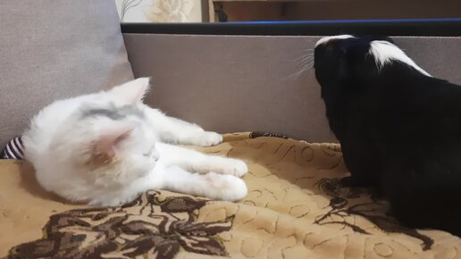 Знакомство котенка и морской свинки. И хочется, и колется, и мама не велит)