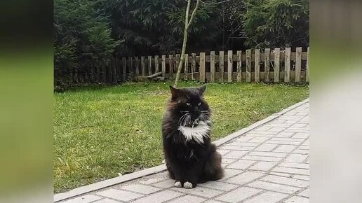 Кот бежит за хозяином. Выходит ли кот за пределы своей территории?Курильский бобтейл Мася.