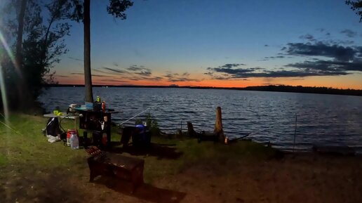 Разбили лагерь на огромном озере. Уютный вечер с комфортом