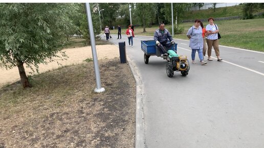 Показываю как собирают муссон в парке . Мужик на муравье чистит мусорки - вот жто чистота