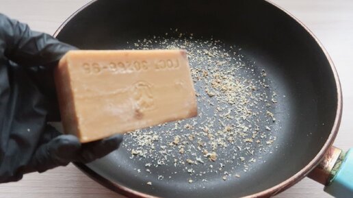 Если сковородка пригорела и появился нагар, то я ее не чищу средством, а просто натираю на нее хозяйственное мыло. Вот зачем это делать