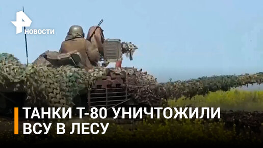 Эпикажи танков Т-80 уничтожили группу боевиков, окопавшихся в лесу