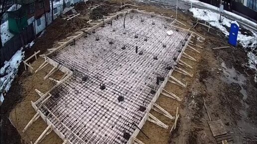 Процесс строительства двухэтажного дома с плоской кровлей.