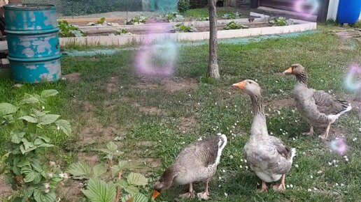 Гусиные прогулки) Белобородый, Плюша и Гриня - послушные гусики.
