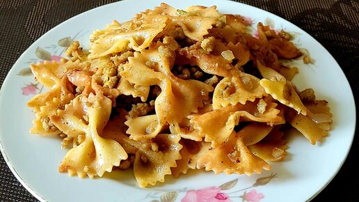 Самая простая и классическая паста с макаронами фарфалле и обжаренным фаршем