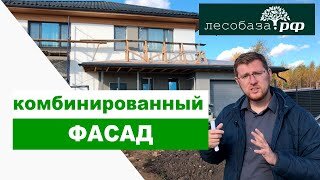 Комбинированный фасад дома. Штукатурка. Планкен. Камень