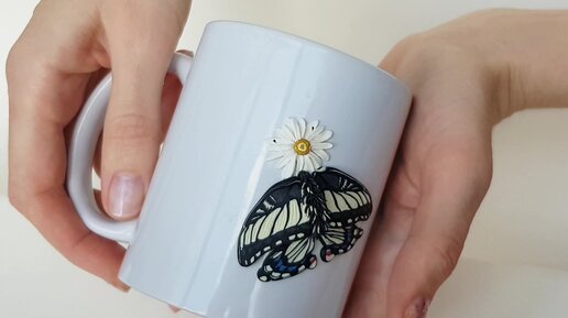 Чашка с декором Махаон Парусник из полимерной глины ручной работы. Подарочная кружка с бабочкой.