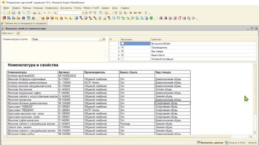 Выгрузка номенклатуры со свойствами и значениями для УТ 10.3, УПП 1.3, КА 1.1.