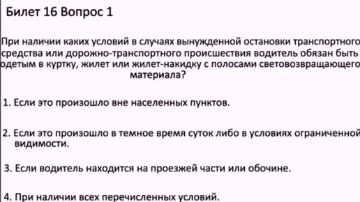 Далее: РАЗБОР БИЛЕТОВ ПДД. Билет 16 Вопросы 11-20.