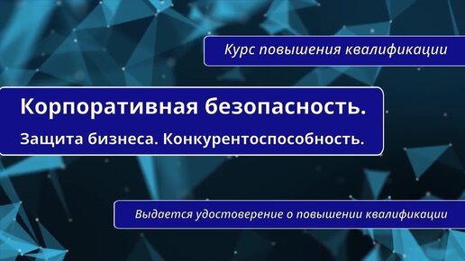 Корпоративная безопасность. Конкурентоспособность. Защита бизнеса. Курс повышения квалификации. Санкт-Петербург.