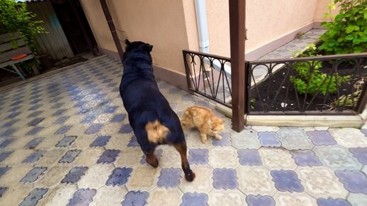 Кот неожидал, что маленький ротвейлер вырастет до таких размеров 😃