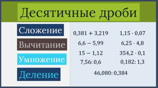 Все действия с десятичными дробями (Сложение, вычитание, деление и умножение)