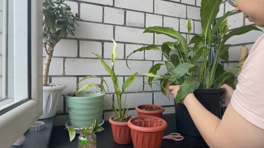 Летние пересадки комнатных растений(маранта, спацифиллум, клеродендрум, каланхоэ)