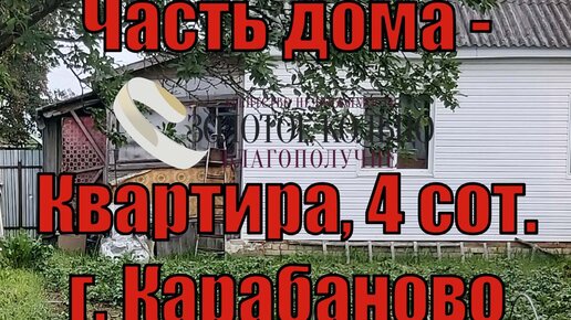 1/4 часть бревенчатого дома (1-ком.квартира) на участке 4 сотки в гор. Карабаново
