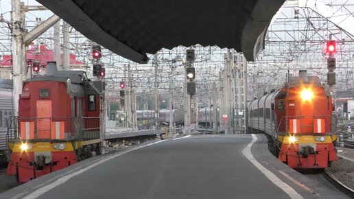 Электровоз ЭП2К - 226 резервом, тепловозы ТЭМ18В - 033 резервом и 030 подаёт состав под посадку на Московский вокзал, июнь 2023 года