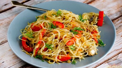 Яркие краски, сочность и особенный аромат. Фунчоза с консервированным тунцом.