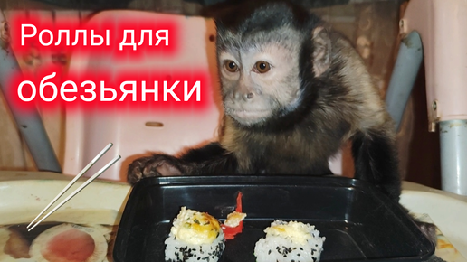 Маленькая домашняя обезьянка Алекса впервые пробует роллы!