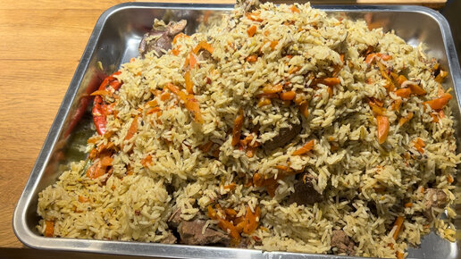 Плов с бараниной и говядиной в казане