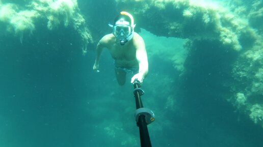 Подводный мир Тарханкута. Дайвинг. Заплыв через подводный тоннель в Чашу Любви. Крым 2023.